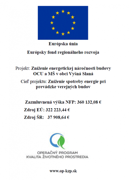 Európsky fond podporuje zníženie energetickej náročnosti vo Vyšnej Slanej